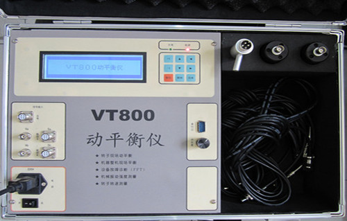 VT800动平衡仪可以对各种旋转机械进行整机现场动平衡,相当于一台可移动的动平衡机。它设计精巧携带方便,整个仪器从外观看只是一只公文箱。VT800的主要功能是仿照德国申克公司的VIBROPORT系列通用振动测试仪而研制生产的。有许多振动用简单仪器无法进行测量,例如相邻的扰动频率靠得太近、转子转速不稳定或不可接近等。但使用VT动平衡仪即使是在最恶劣的条件下也可以得到最精确的测量精度。